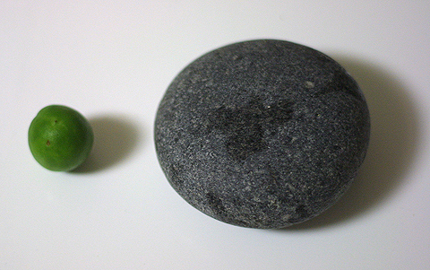세척한후 물기를 빼고 도마나 대리석위에 매실을 세워놓고 돌로 내려칩니다.