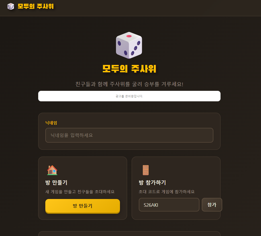 방장이 방을 만든후 다름사람에게 링크를 전송해서 모아서 주사위를 굴릴 수 있어요.