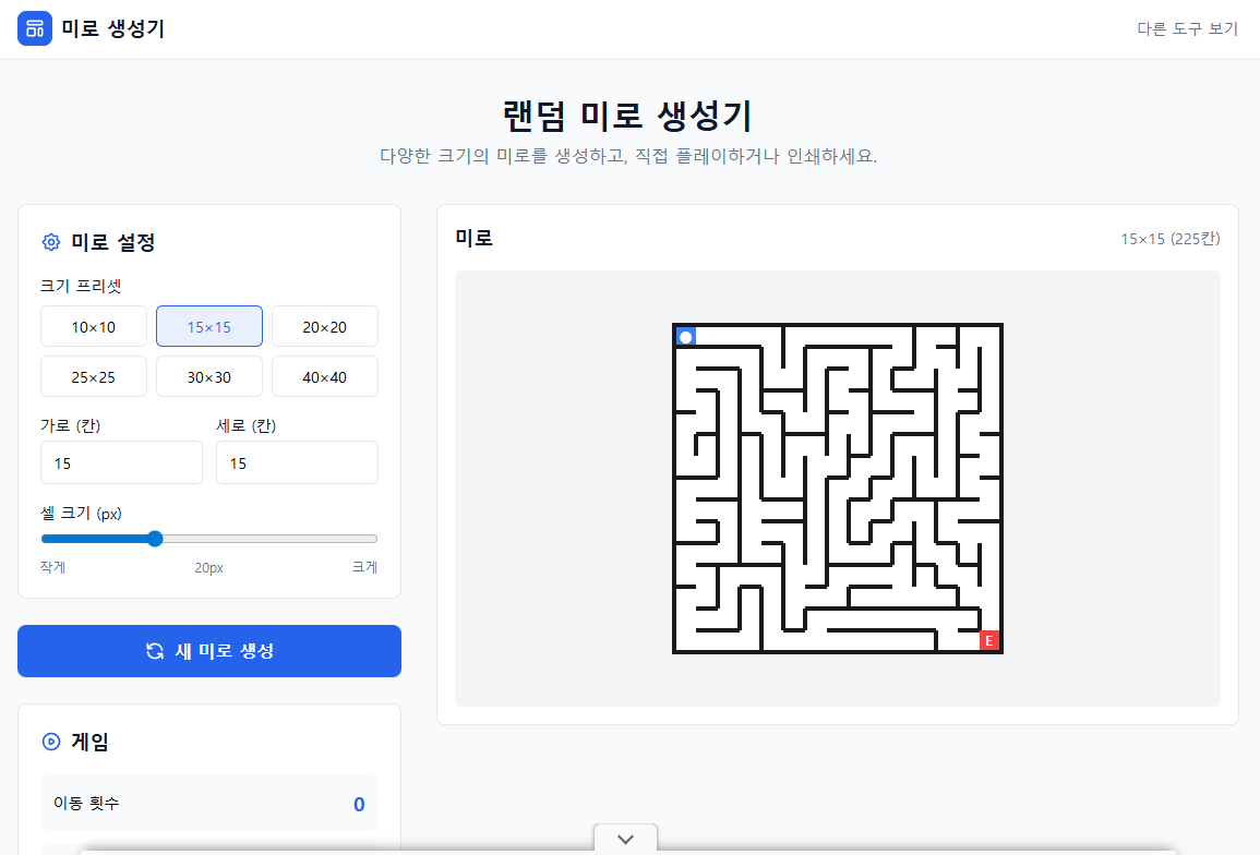 랜덤 미로 생성기 - 무료 미로찾기 만들기
