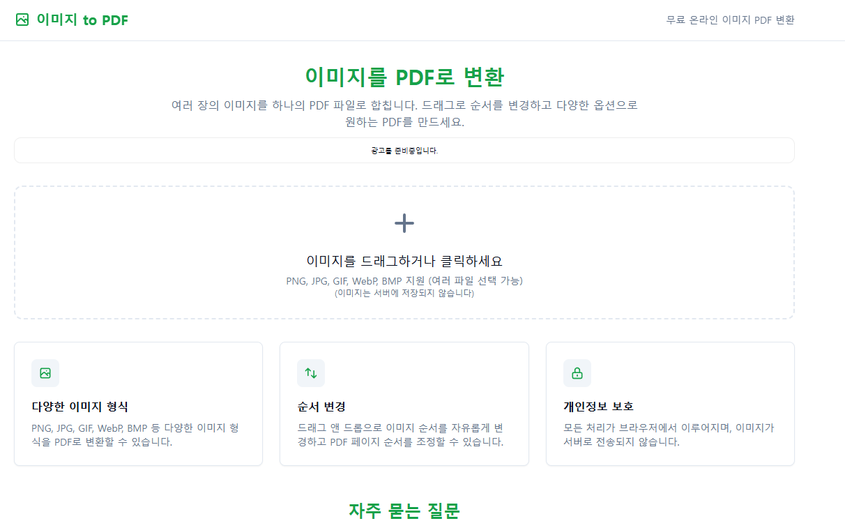 이미지 to PDF - 무료 온라인 이미지 PDF 변환 도구
