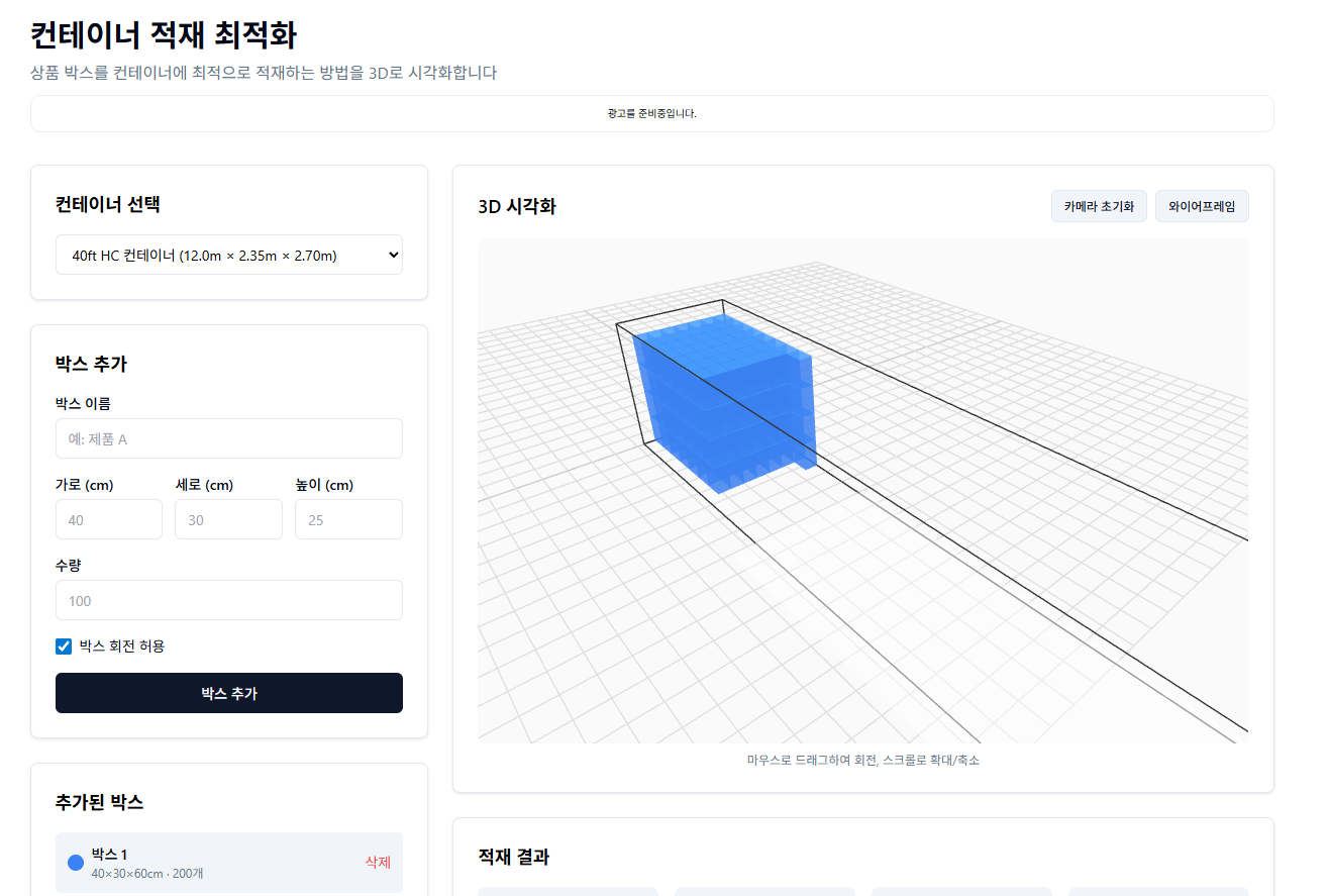 잡동사니 컨테이너 적재 최적화 계산기 서기㏇ 2026. 1. 16. 02:25 반응형 컨테이너와 들어갈 카툰크기와 수량을 입력하면 어떻게 쌓아야 최적으로 쌓을 수 있는지 계산해 주는 사이트 사입니다. https://container.unidago.com/ 반응형 공유하기 게시글 관리 둘에서 하나로.... '잡동사니' Related Articles 무작위 한국어 단어학습 플래시 카드 사이트 온라인 무료 주소라벨 생성기 무료 꿈풀이(해몽) 사이트 JSON을 보기좋게 가공해서 보기 - json.unidago.com