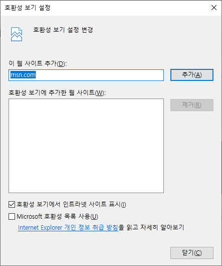 도구 - 호환성 보기 설정에서 해당 사이트를 추가한후 진행하면 이상없이 설치 가능합니다.